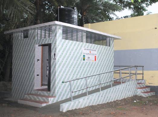 In addition, emphasis is given to improve school latrines. The old ones are renovated to improve water supply (piped-water) and safety tanks or new ones are constructed where either no or inadequate latrine was available. The outer and inner walls are tiled to avoid rusting and damage caused by salinity. Community /Public latrines were Identified and installed in 1100 schools or public places. On test basis, some latrines Infrastructures are designed to be user-friendly for people with disabilities.